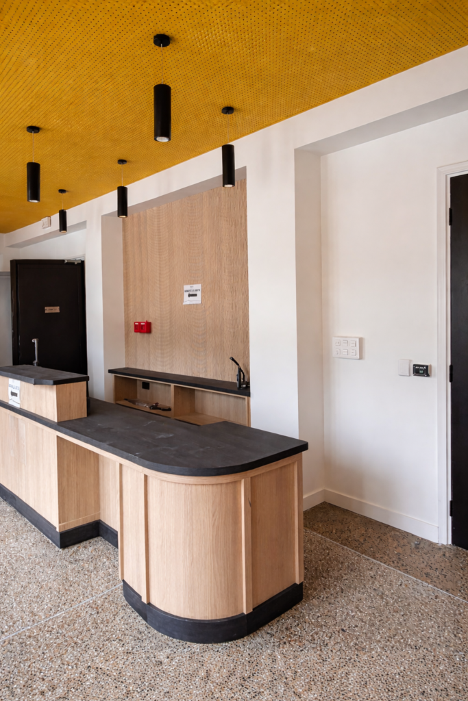 Le travail de 86 ? Le respect de l’architecture existante jusque dans les détails de création du mobilier, afin de redonner au bâtiment toute sa splendeur, de conserver la mémoire de son style en le réadaptant aux usages actuels.