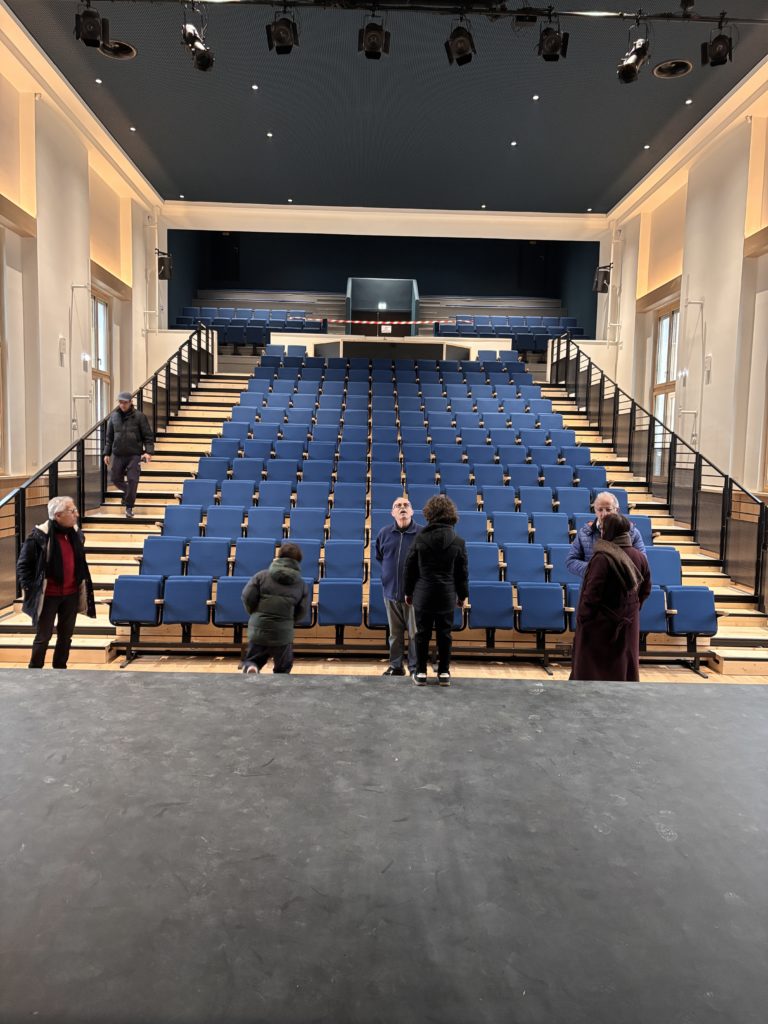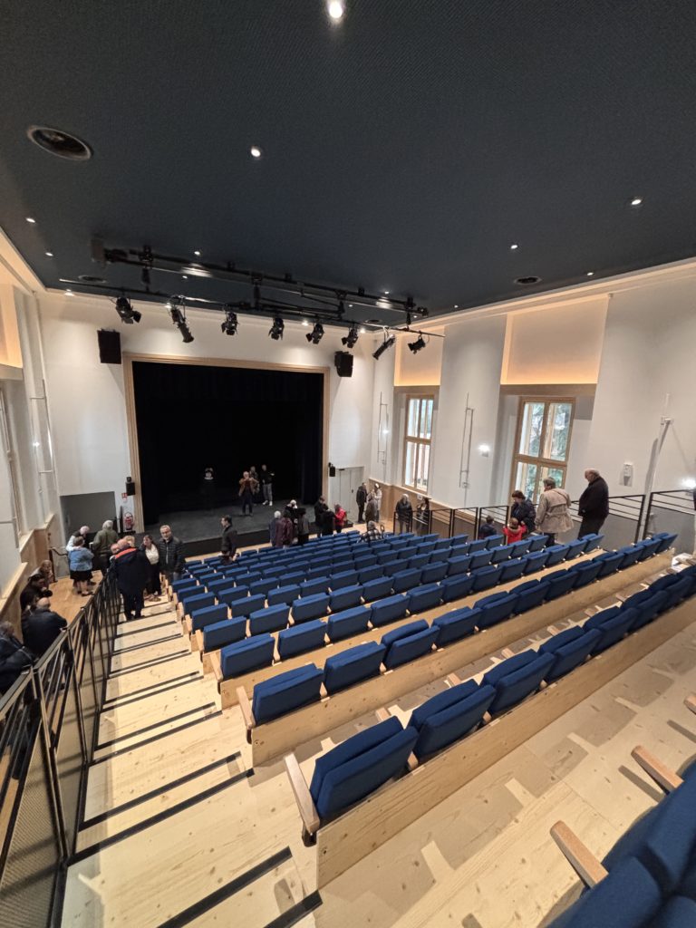 Le bâtiment accueil deux salles : la salle haute permet l’accueil de spectacles et la salle du bas accueillera des manifestations organisées par la commune ou ses associations.